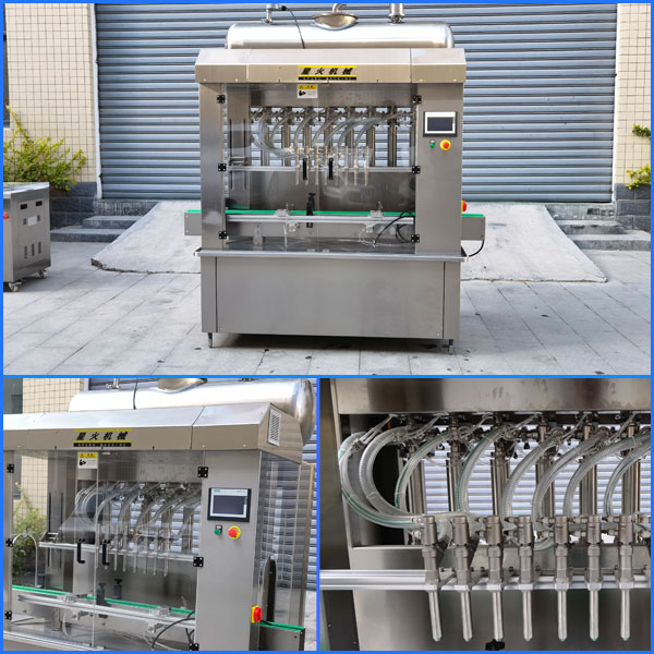 5、液體灌裝機的灌裝嘴設有防滴漏裝置,確保灌裝無拉絲、不滴漏。