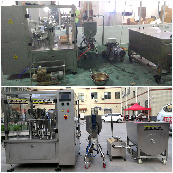 星格機械給袋式火鍋底料包裝機械實拍展示圖